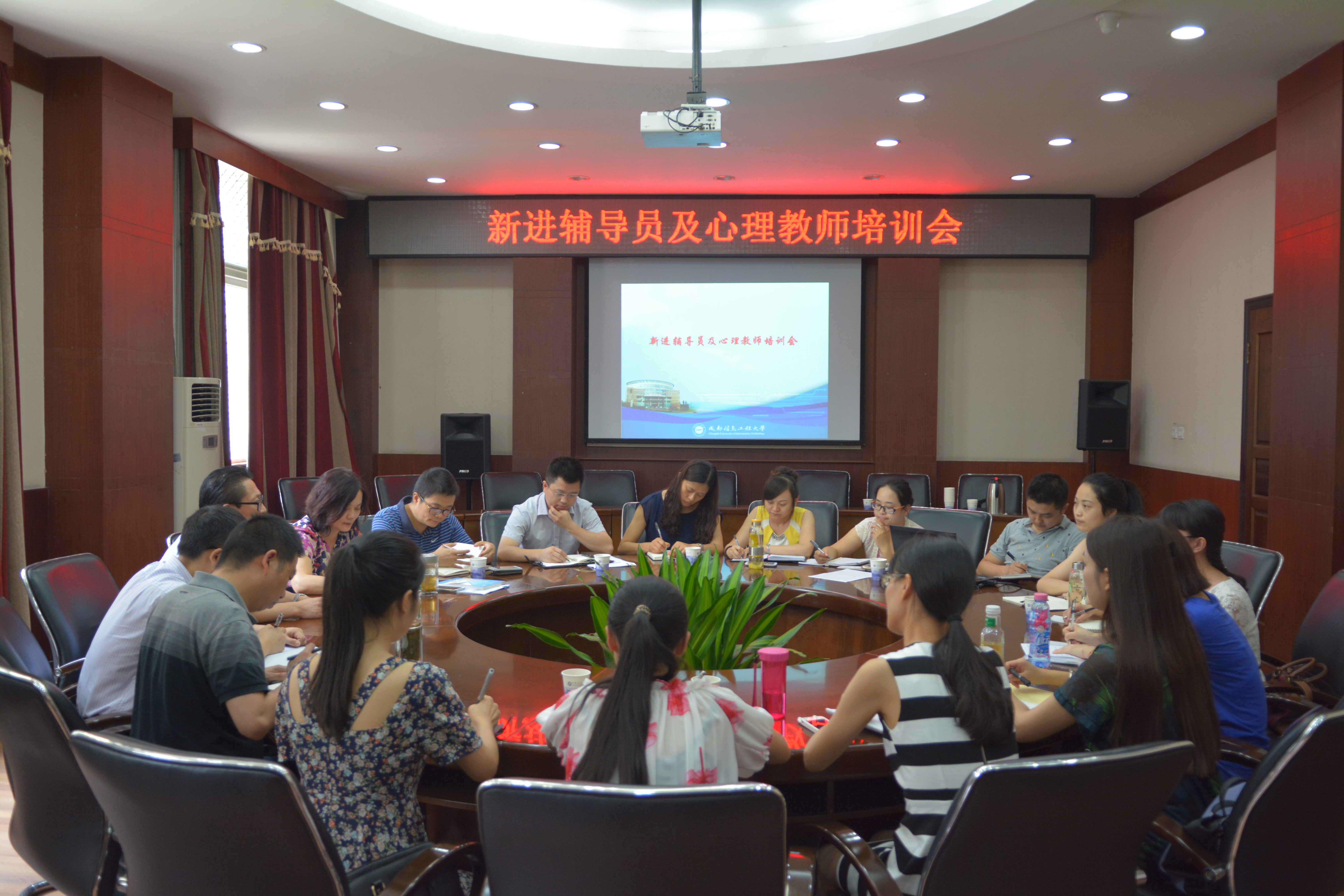 【本网讯】7月7日下午,学校在第六会议室召开新进辅导员及心理教师培训会。学校副校长于世祥,组织人事处、学生工作处、校团委等部门负责人,7名新进辅导员及心理教师参加了会议。会议由学生工作处处长戴丽红主持。