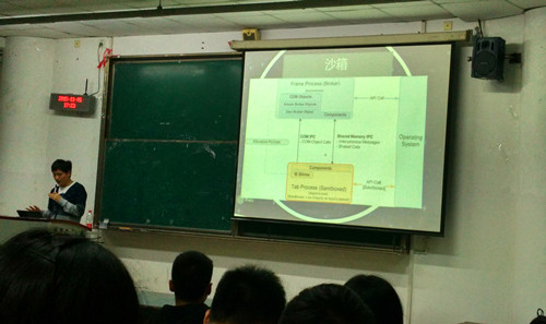 当天下午,清华大学网络行为研究所安全工程师骆鑫做了题为《当前国内外网络安全技术发展》的学术讲座。信息安全工程学院信息安全、网络工程、信息对抗技术等专业和相关学院的近百名学生聆听了此次讲座。