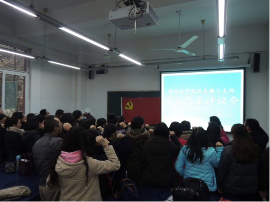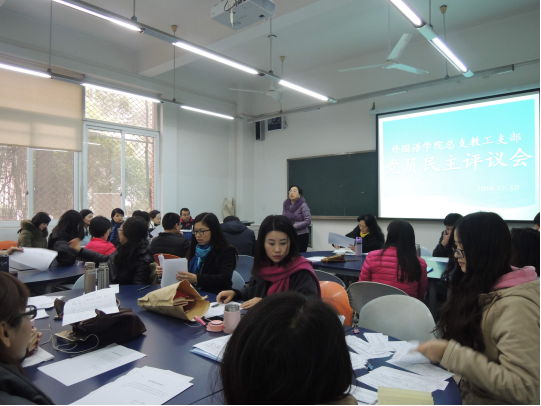【本网讯】为贯彻落实学校“两学一做”整体工作安排,12月30日下午,外国语学院党总支教工支部全体党员在4105教室召开了2016年度党员民主评议会。