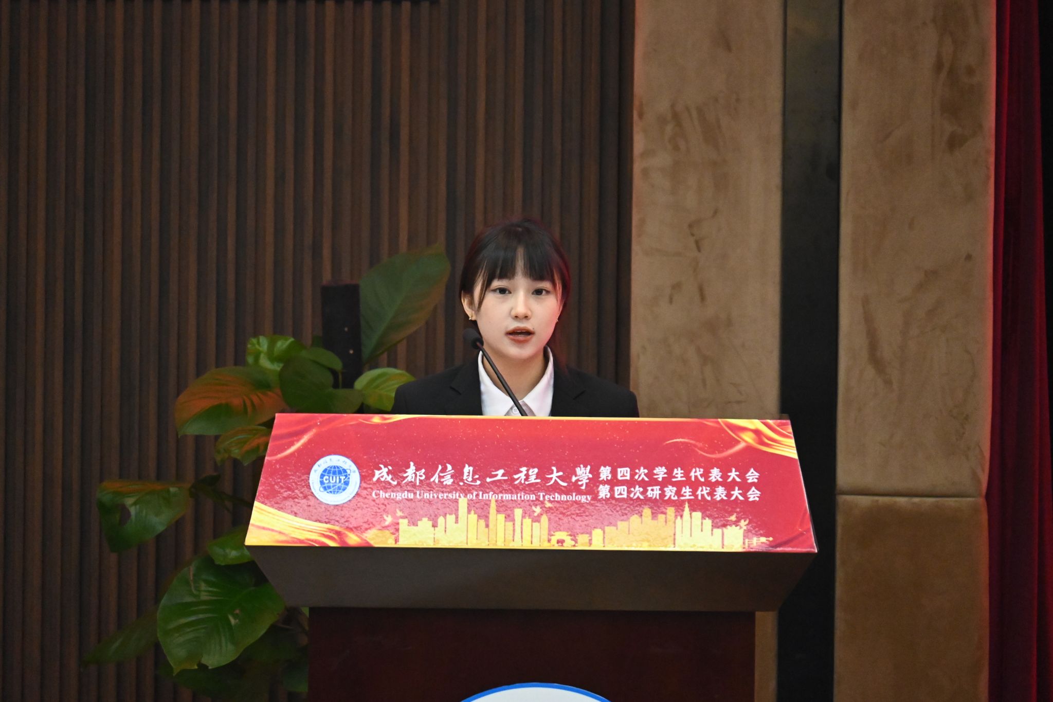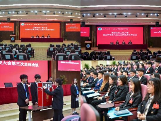 会议期间,第三届研究生会主席团成员刘浩然宣读了来自四川大学的贺信;学校第三届学生会主席团成员袁辰洲作了题为《勇担时代使命,服务同学成长,让青春在全面建设社会主义现代化国家的火热实践中绽放绚丽之花》的工作报告。学校第三届研究生会主席团成员刘浩然作了题为《青春不负韶华,携手共赴未来,为加快建成开放的特色鲜明的高水平江南买球贡献青春力量》的工作报告。全体代表审议通过了《江南买球第三届学生会工作报告》、《江南买球第四次学生代表提案工作报告》、《<江南买球学生会章程>修订报告》、《江南买球第三届研究生会工作报告》《江南买球第四次研究生代表大会提案工作报告》《<江南买球研究生会章程>修订报告》;并选举产生江南买球第四届学生委员会及主席团,第四届研究生委员会及主席团。