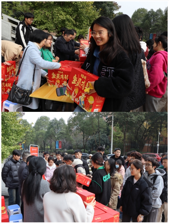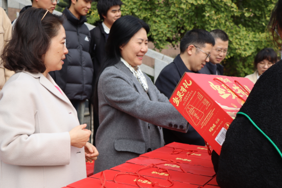 本次活动准备的礼物是美味的坚果礼盒与一张有着学弟学妹们亲手书写的鼓励话语的寄语卡片,旨在通过温暖礼物传递学校、学院对考研学子的关心与鼓励,同时希望能激励学生们以更加积极的态度面对未来的挑战。同学们纷纷表示,这份礼物在寒冷的冬天不仅温暖了他们的心,也为他们注入了信心和力量。