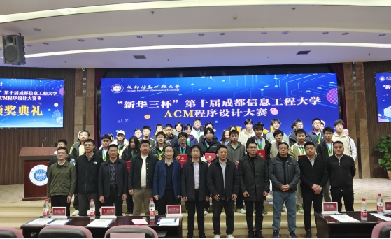 当天下午,颁奖典礼在国际会议厅隆重举行。学校副校长舒红平,新华三集团副总裁、成都研究院院长张微,ACM大赛顾问、南京理工大学副教授杜晓宇,学校教务处、国内合作处(校友办)、校团委、软件工程学院、教育基金会负责人,新华三集团四川代表处、四川霖普科技有限公司负责人,以及所有校外参赛选手和我校参赛学生、师生代表等300余人参加典礼。
