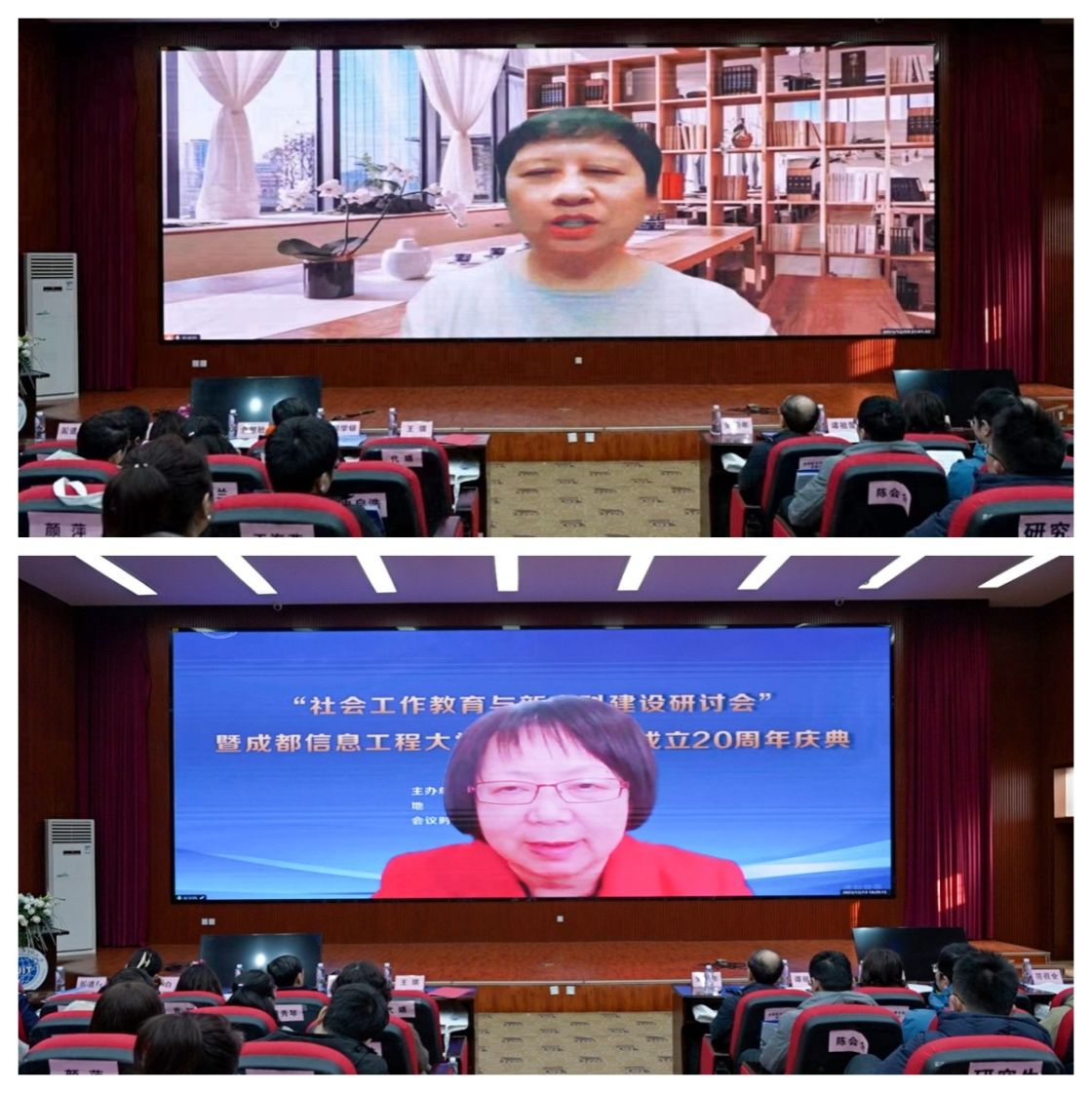中国社会工作教育协会会长马凤芝教授、副会长彭华民教授分别在线致贺辞,她们共同肯定了我校社会工作专业20年来,在人才培养、服务地方发展、推动行业建设等方面所取得的成绩,并且高度赞扬了学校在中国社会工作教育协会中发挥的积极作用,同时鼓励师生们再接再厉、再上新台阶。