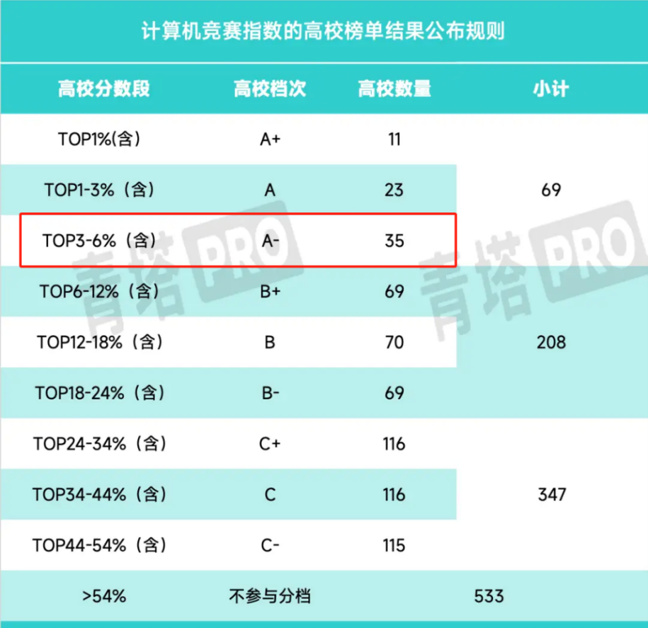计算机竞赛指数的高校榜单结果公布规则