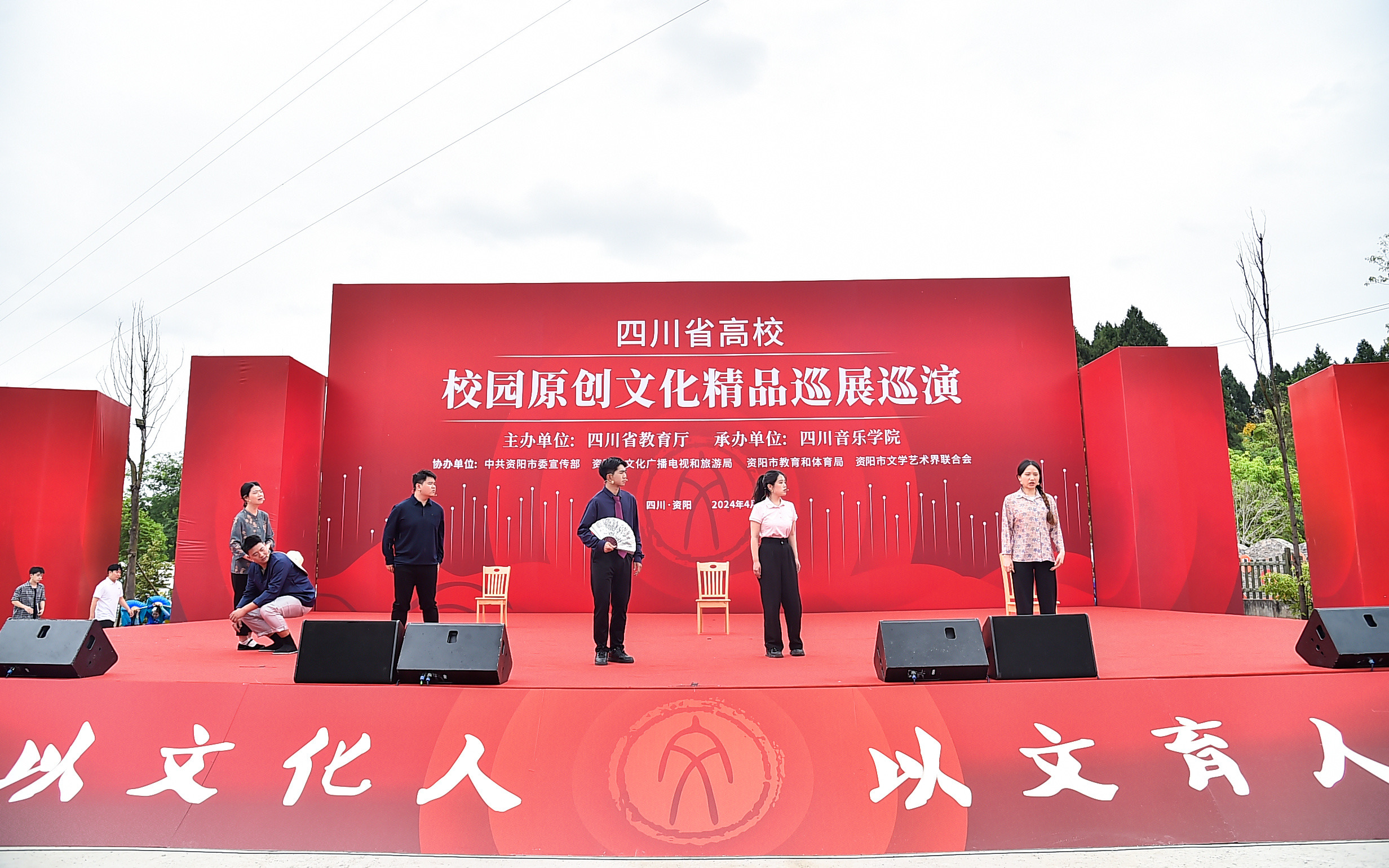 【本网讯】近日,由四川省委教育工委、教育厅主办的四川省高校校园原创文化精品巡展巡演活动拉下帷幕。我校原创戏剧作品《向天要借丰收雨》、原创音乐作品《炽热青春》在全省55所高校报送的107件作品中脱颖而出,入选四川省31件校园原创文化精品。作品先后在资阳市雁江区晏家坝村、西部战区空军礼堂进行了巡展巡演。