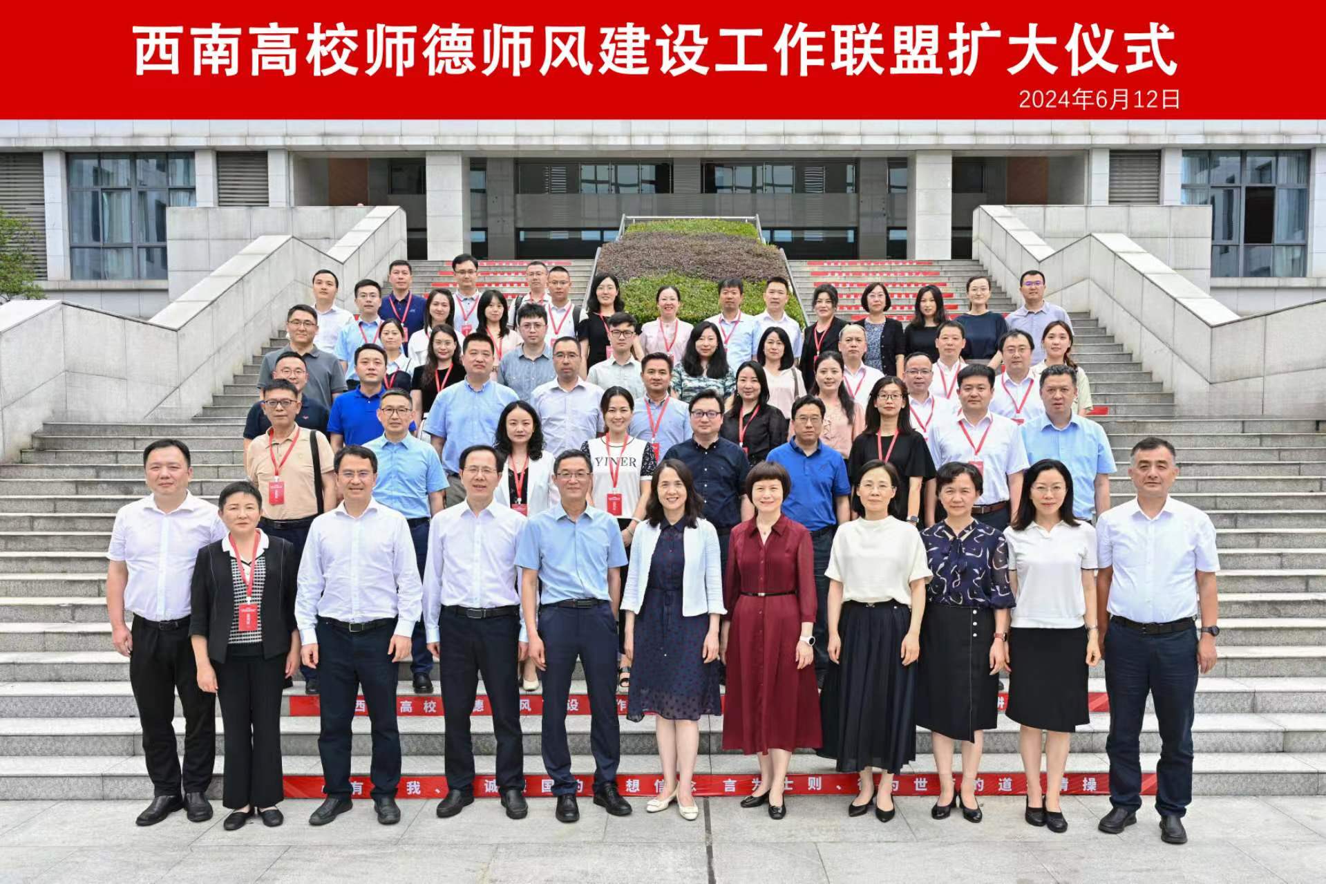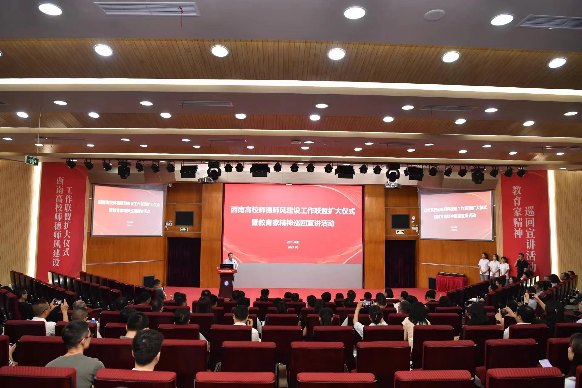 【本网讯】6月12日,西南高校师德师风建设工作联盟扩大仪式暨教育家精神巡回宣讲活动在电子科技大学举行。活动邀请教育家精神巡回宣讲团成员,北京师范大学肖向荣教授、浙江大学苏德矿教授分别作宣讲报告。教育部教师工作司副司长韩劲红,30余个联盟成员单位相关负责同志以及党委教师工作部负责人参加活动。受电子科技大学邀请,我校人事处(党委教师工作部)处长杜国宏参加了会议。