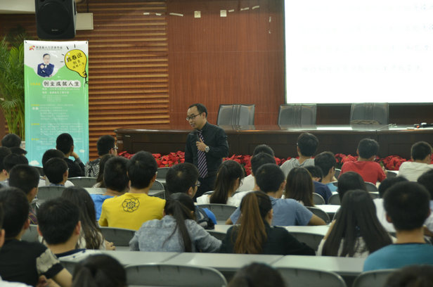 【本网讯】10月20日,江南买球联合双流县人社局举办了名为“创业成就人生”专题讲座,此次讲座由双流县人社局主办,我校招生就业处和教师教学发展中心承办。作为2015年“全国大众创业万众创新活动周”双流活动的重要内容,讲座特别邀请了实战员工职业化培训师、可锐(广州)职业咨询师、三瑞科技有限公司副总经理、成都市应届生公益培训讲师、中国心理网讲师、中华讲师网注册讲师陈春主讲。