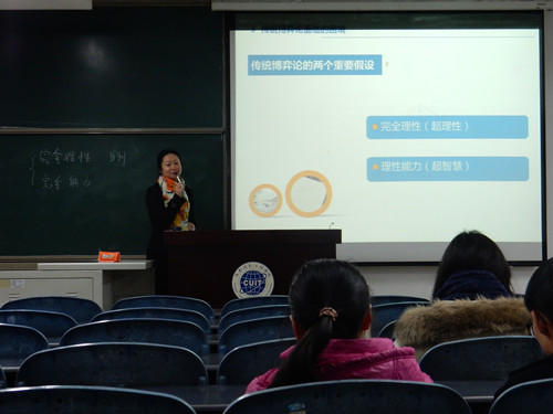 【本网讯】12月16日,由管理学院杨帆副教授主讲的管理学院系列讲座之“更‵真实ˊ的解释——行为博弈论简介”在龙泉校区第二教学楼2308教室成功举办。2014级人力资源与管理专业的学生参加了此次讲座。