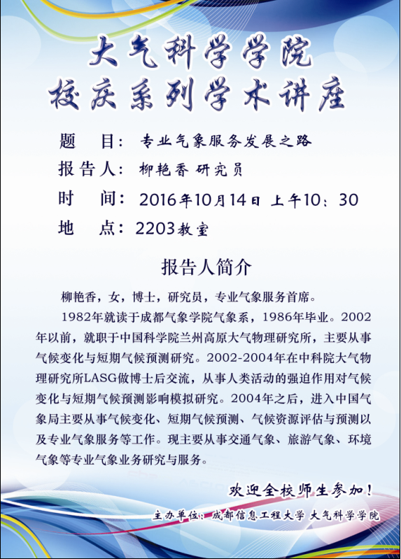 上一条:【学术预告】中国气象局副局长许小峰应邀到我校作学术报告