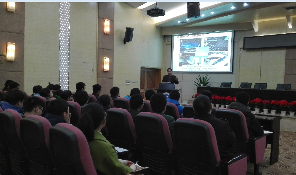 贺盛瑜对王玉忠的到来表示热烈欢迎,并对王玉忠作了简要介绍。随后,王玉忠对高分子材料的发展趋势、高分子材料带来的污染问题和环境友好型高分子材料的研究三个方面展开了讲解,他通过PPDO典型案例重点阐述了高分子材料催化法资源化回收的工艺,使广大师生系统地了解了环境友好型高分子材料的性能和优点。