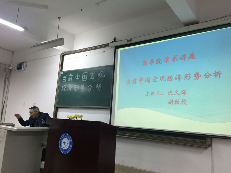 【本网讯】4月11日,商学院财经大讲堂系列讲座之“当前中国宏观经济形势分析”学术讲座在龙泉校区2310教室举行,讲座由商学院沈久辉副教授主讲。