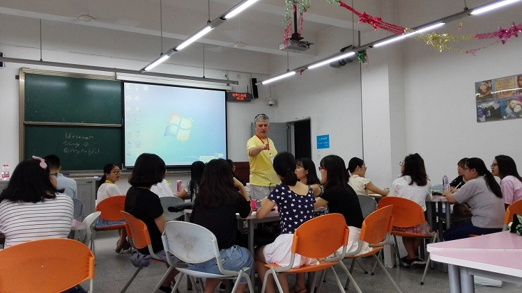【本网讯】7月17日,外国语学院国际教育周受邀的Bruce Gentry博士对同学们的项目实践结果进行了考核。在国际教育周第一天的课程中,Bruce Gentry博士就为同学们介绍了英语习语,并布置了与英语习语相关的项目实践任务。