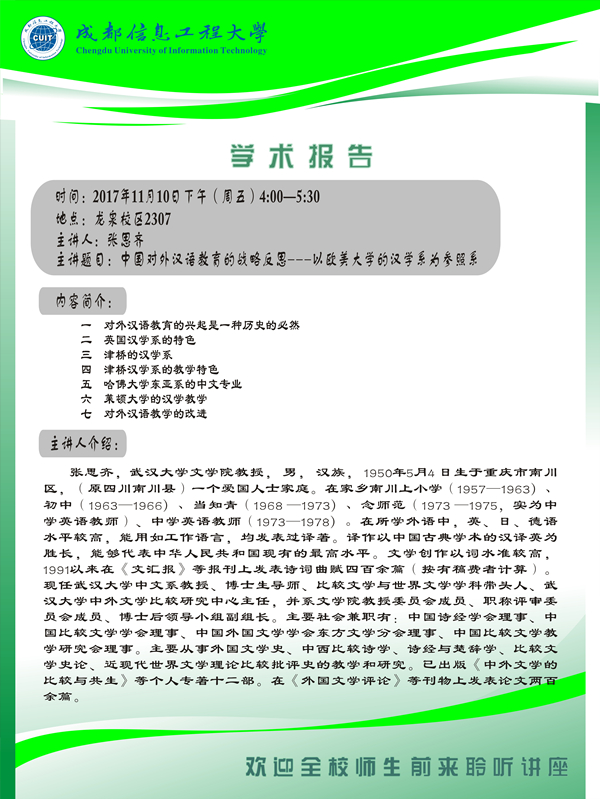 上一条:四川大学石坚教授应邀到我校作学术报告