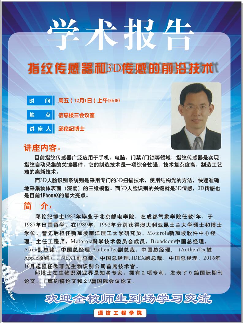 上一条:欧菲光生物识别公司首席技术官邱伦纪博士应邀来我校作学术报告