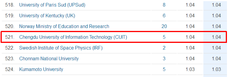 【本网讯】根据最新自然指数报道(统计时间为:2017-02-01~2018-01-31),我校在“地球与环境科学”学科领域排名全球第521位(全球2154所高校和科研机构上榜),在国内高校和科研机构中排名第39位(全国158所高校和科研机构上榜)。