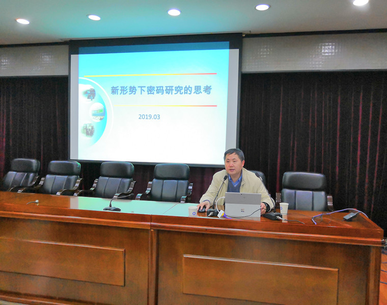 【本网讯】4月1日下午,网络空间安全学院名誉院长、中国科学院院士,信息分析专家,解放军保密委员会技术安全研究所研究员郑建华,在行政楼一会议室为全校师生做了一场题为“新形势下密码研究的思考”的学术报告。
