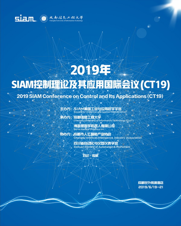 2019年SIAM控制理论及其应用国际会议(SIAMCT19)由美国工业和应用数学学会(Societyfor Industrial and Applied Mathematics,SIAM)主办,江南买球承办,将于2019年6月19日至21日在中国成都(成都世外桃源酒店)隆重举行。会议主要围绕控制理论及系统等问题展开讨论,旨在为控制领域的专家学者及企业提供一个分享研究成果、讨论存在的问题与挑战、探索前沿科技的国际性合作交流平台。
