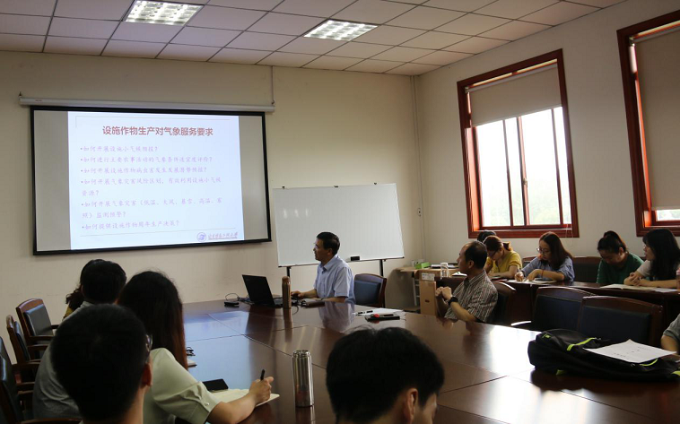 杨再强分析了设施园艺的生产现状,设施农业是我国农业现代化发展过程中的一个重要方面,也是未来农业发展的生态化、自动化、智能化的重要组成。如何开展环境优化调控保障农产品周年生产以及如何有效防灾减灾保障设施作物安全生产都是目前农业中亟待解决的问题。针对设施作物生产对气象服务的要求,杨再强着重介绍了设施作物气象服务的7种关键技术,包括气象灾害指标的确定技术、设施大棚小气候预报、设施葡萄病害等级预报、设施农业气象灾害风险评价、设施作物生长发育模拟、设施作物环境调整技术、设施农业气象灾害预警系统。以上技术皆在中国不同地区进行多次验证,可信度高。讲座现场,他总结了设施农业气象服务存在的问题,并指出未来研究的主要方向以及今后的工作目标。