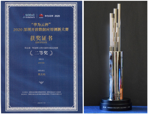 【本网讯】近日,“华为云杯”2020深圳开放数据应用创新大赛落幕。本次大赛以“数聚粤港澳,智汇大湾区”为主题,共设置4个赛道:算法赛、数据创意赛、数据分析赛和南山专题赛。本次大赛面向全球高等院校、专业研究机构、数据分析公司、开发者征集基于开放数据的创新应用解决方案和算法模型。我校中国气象局大气探测重点开放实验室博士后、应用数学学院教师熊太松组成的panda团队在算法赛—粤港澳大湾区强降水临近预测中获得大赛二等奖。