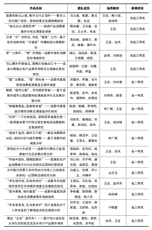 我校统计学院教师王臣、张凤、魏静指导的学生团队赵美旗、肖盼、庄佳佳、张思琪、闫星璇的作品《栖息山野,枕下清梦--乡村振兴背景下乡村民宿消费影响因素及满意度调查研究--以成都市为例》获得全国二等奖。