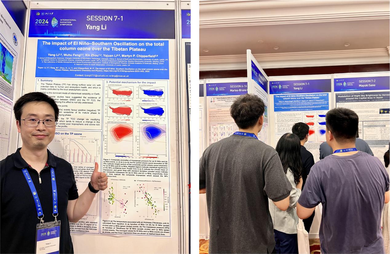 【本网讯】6月17日至21日,2024国际辐射大会(International Radiation Symposium2024; IRS2024)在杭州召开,本次大会由浙江大学主办,国际气象学与大气科学协会(IAMAS)国际辐射委员会(IRC)协办,旨在展示和讨论大气辐射领域的最新研究成果和技术发展。我校大气科学学院张小玲教授、李扬副教授、和周欣副教授应邀参加此次会议,并开展学术交流。张小玲在Session3: ParticalRadiative Properties分会场作题为“Carbonaceous Aerosol Pollution Characteristics and Radiation Effects in Chengdu, Southwest China”的墙报展示;周欣在Session 7: Wether, Climate and Enviroment Applications分会场作题为“Atmospheric and Near-term Climate Impacts of the 2022 Hunga Tonga-Hunga Ha’apai Water-rich Plume”的学术报告;李扬在此分会场作题为“The Impact of El Niño–Southern Oscillation on the Total Column Ozone over theTibetan Plateau”的墙报展示,并与国内外同行进行了热烈的讨论与交流。