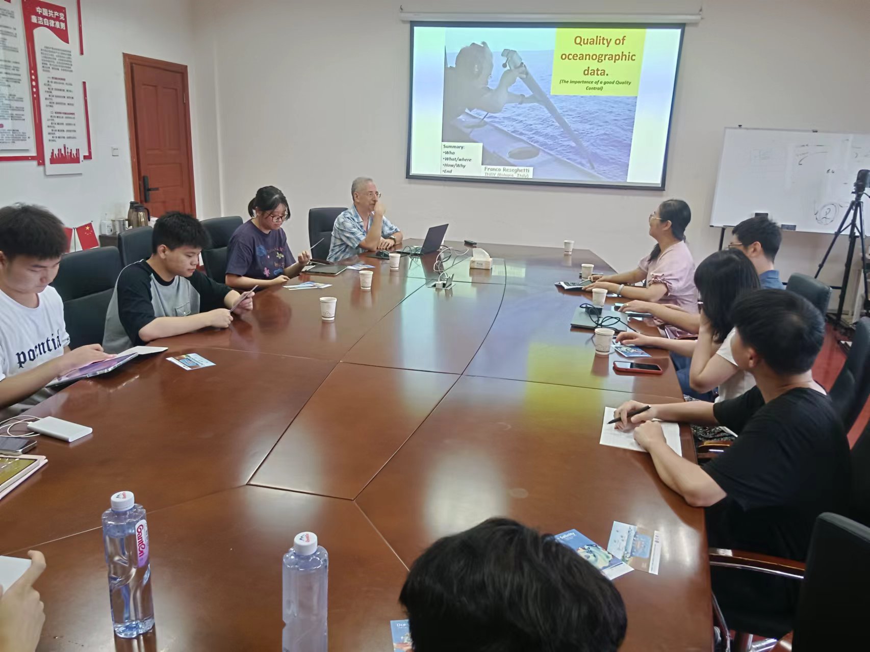 【本网讯】7月8日上午,应大气科学学院邀请,意大利博洛尼亚国家地球物理与火山研究所(INGV)的Franco Reseghetti教授来我校交流,并作题为《Quality of Oceanographic Data——The Importance of a Good Quality Control》的学术报告。本次报告由大气科学学院陈科艺教授主持,大气科学学院的部分师生参加了学术交流。