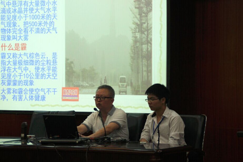 【本网讯】2015年6月14日在江南买球学术报告厅召开了“气象防灾减灾宣传志愿者中国行”培训大会。参加本次的气象防灾减灾知识培训的人员有雷电专业张晓春和林刚老师,新闻稿、摄影培训的相关人员,以及参加“气象防灾减灾宣传志愿者中国行”活动的各个队伍的全体成员。