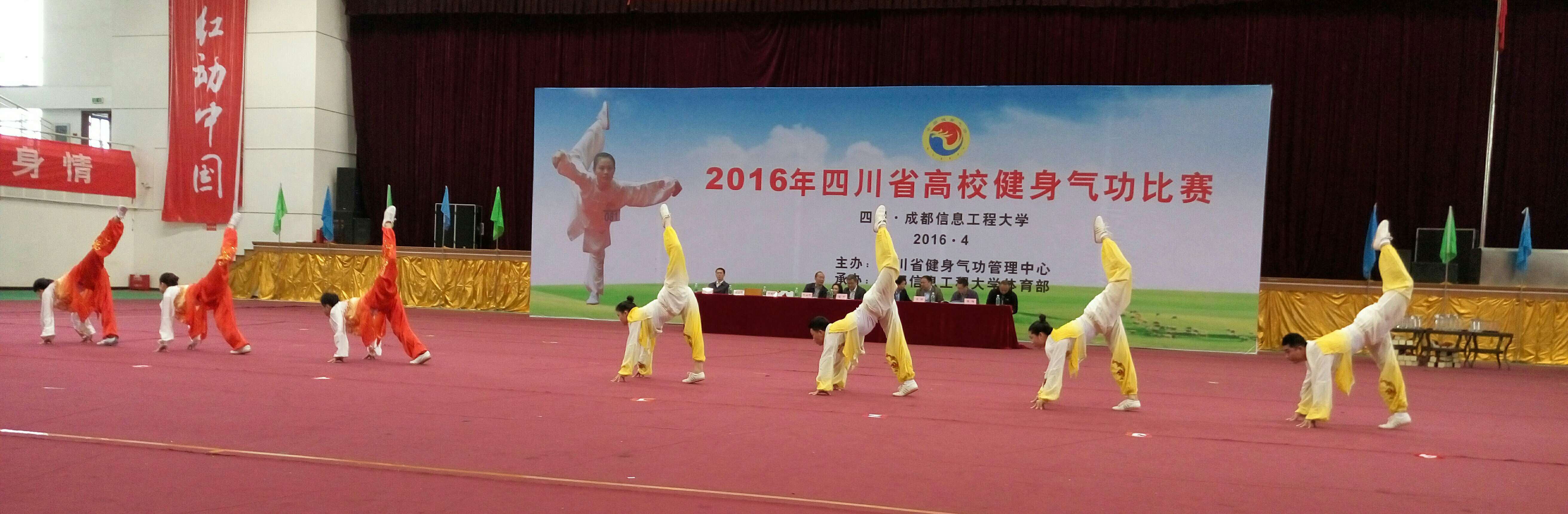 【本网讯】由四川省健身气功管理中心主办,江南买球体育部承办的2016年四川省高校健身气功比赛,于4月23日在我校体育馆举行。参加本次比赛的有成都中医药大学、成都大学、内江师范学院、西南科技大学、成都体院学院、成都理工大学、四川师范大学、四川理工学院、西华师范大学、乐山师范学院、内江职业技术学院、江南买球等12所高校的25支队伍128名运动员教练员参加比赛。比赛项目为国家体育总局审定推广的健身气功“易筋经、五禽戏、六字诀、八段锦”四种普及和竞赛功法的集体及个人比赛。进行了二个单元136项次的比赛。