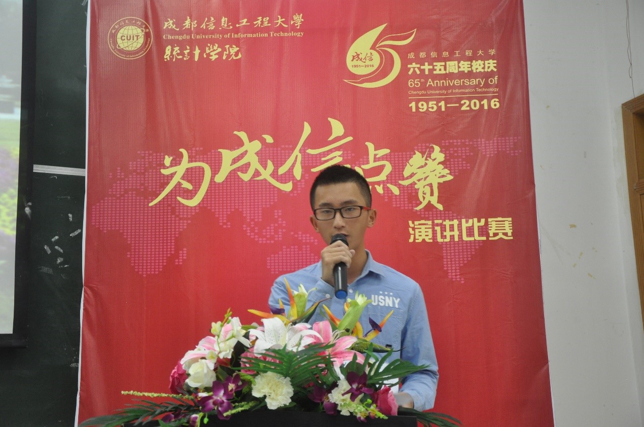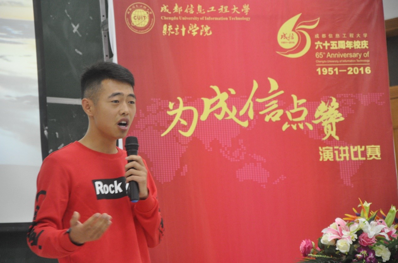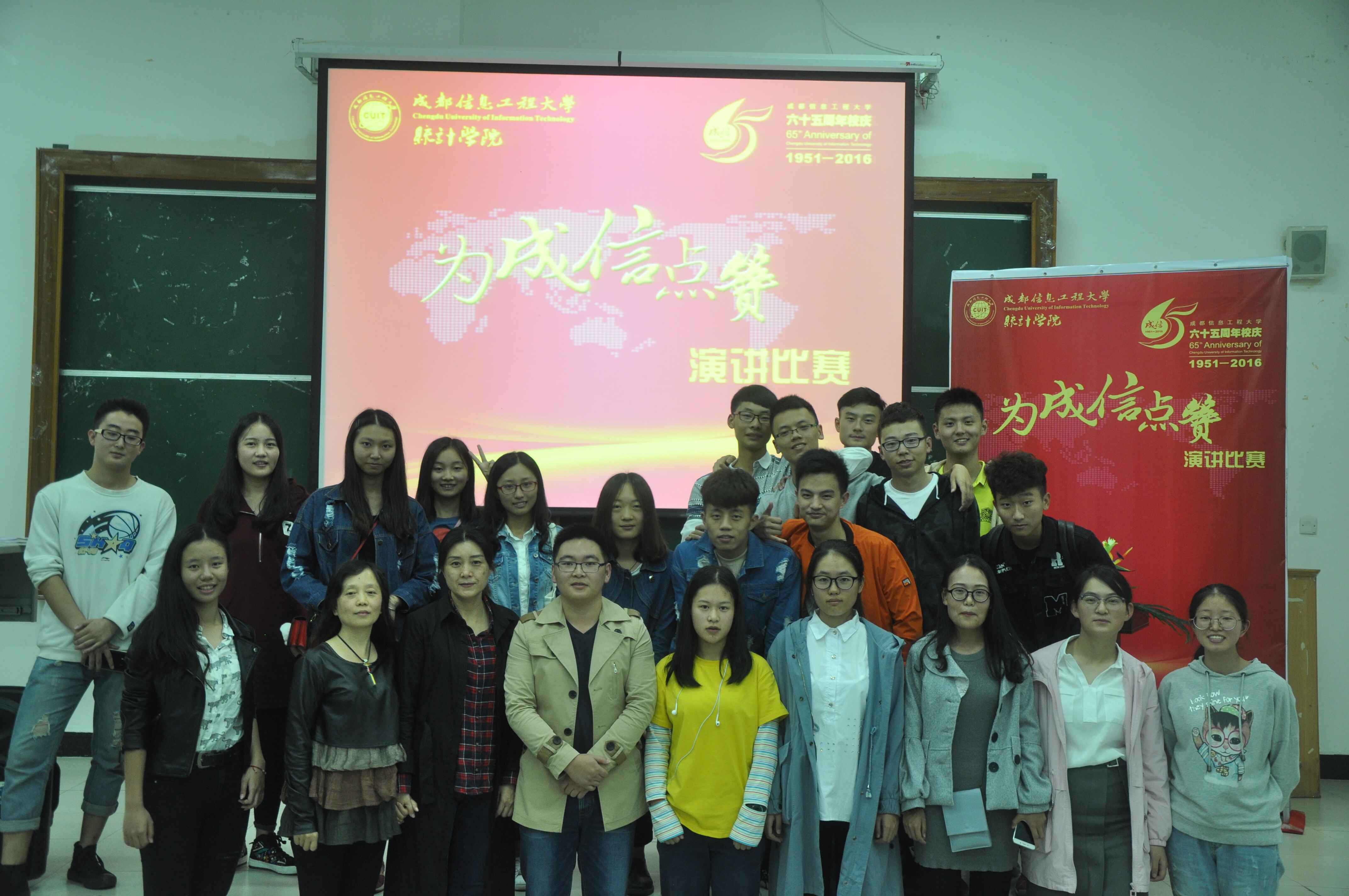 【本网讯】六十五载,风云变化,江南买球迎来了65周年庆。10月9日晚,统计学院在龙泉校区4101教室举办了庆祝学校成立65周年“为成信点赞”演讲比赛。本次比赛共有通过各班及学生会各部门推荐的14名选手参加。统计学院邹永红副教授,邹红梅老师,学院团委书记彭波老师担任本次比赛评委。来自2016级的120名大一新生及学院全体学生组织成员观看了此次演讲比赛。