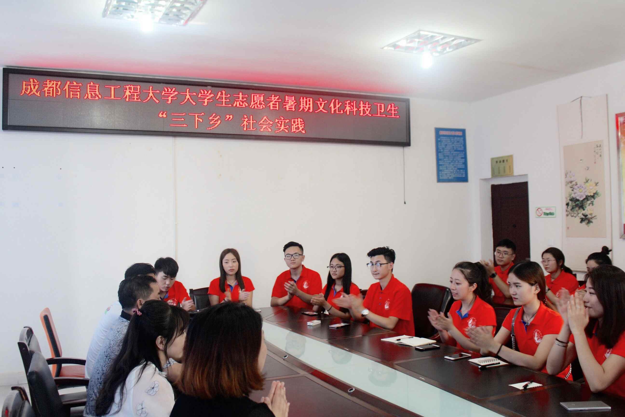 【本网讯】“喜迎十九大,青春建新功”为主题的2017年大学生志愿者暑期“三下乡”社会实践活动在我校正式启动。7月13日上午,社会实践德阳队在旌阳区秦宓社区召开志愿者动员大会。德阳市旌阳区团委副书记胡朝莉,旌阳区秦宓社区党总支书记吴勇,江南买球团委办公室副主任陈敏以及学生志愿者参加了此次大会。