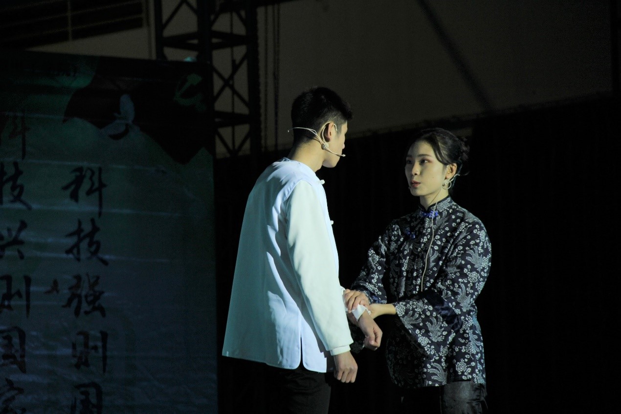 伴着一曲《映山红》去回首那段红色历史;历史情景剧《国家》带领观众走进抗日战争时期,回到那段英雄岁月,感受那份爱国情怀;来自教师代表的舞蹈《张灯结彩》仿佛时代的乐章;研究生及本科党员代表的《少年中国说》气势蓬勃,一起呐喊出了中华少年的时代;从舞蹈《炫》中感受青春的活力、热情、动感与宝贵;民俗体育运动《花式空竹》魅力无穷花样无尽,让人不禁感慨中华上下五千年,传统文化博大精深;彝族舞蹈《七月火把节》婀娜多姿、风情万种,舞者们的一张一弛、一颦一笑都独具民族文化特色;在继承优良传统文化的同时,也要注重科技进步与创新发展,伴随着“科技之星”颁奖典礼的进行,晚会也步入高潮。晚会为表彰在科技创新上取得优异成绩的学生团队,他们积极进取、勇于创新,也为自己的未来发展打下坚实的基础。